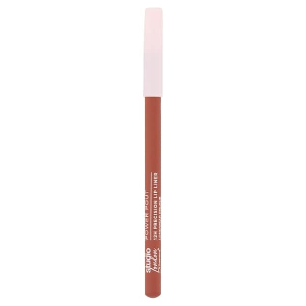 achieve ultimate definition with studio london power pout 12h precision lip liner trace the outline of your lips and follow with your favourite lipstick the soft pencil can be used to reshape lips for a fuller pout