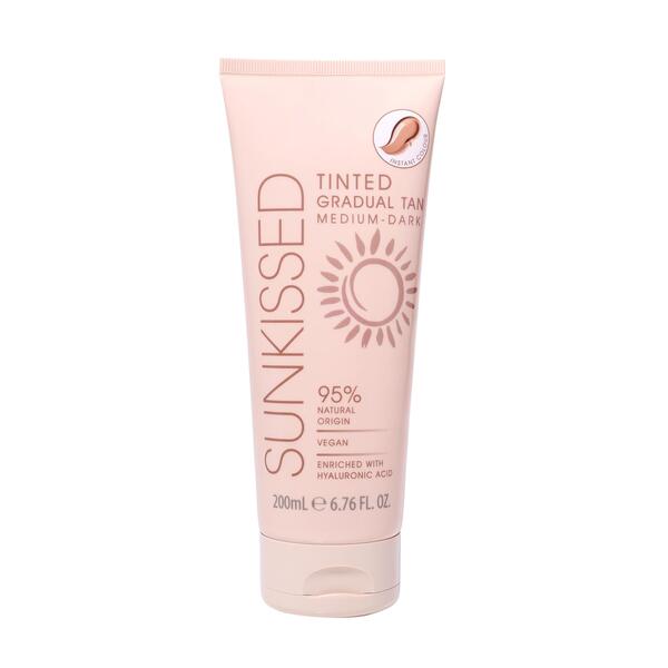 sunkissed tinted gradual tan 200ml is a mediumdark shade perfect for maintaining a deep bronze tan as part of a skincare regime when used regularly or if you have fairer skin apply it 12 times it to achieve a beautiful sunkissed glow