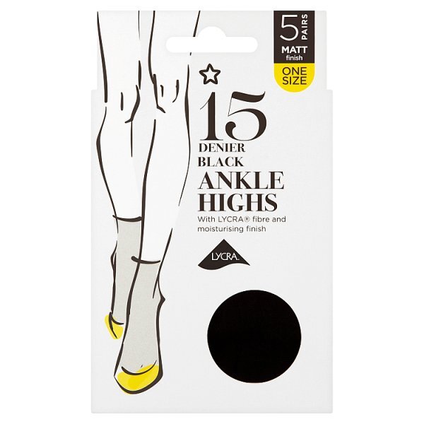 Superdrug 5 Pack 15 Denier Ankle High Lycra Tights - Black