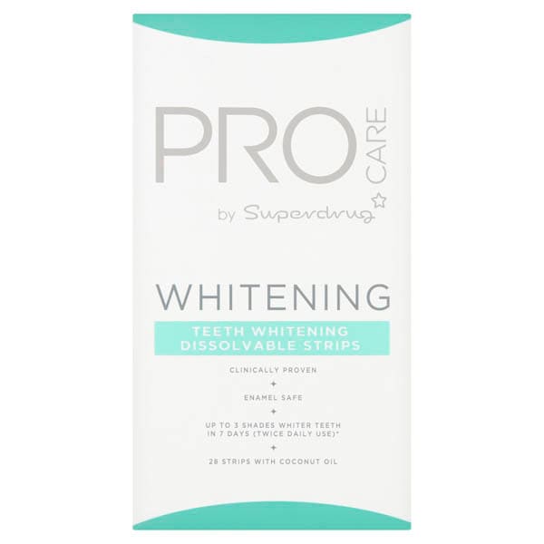 superdrug procare teeth whitening dissolvable strips with coconut oil have been uniquely formulated by oral care experts to whiten teeth with a simple application and nothing to remove after this whitening formulation has been proven to visibly whiten teeth in 7 days they are easy to use and perfect for onthego whitening no need to set a reminder to remove with a mint flavour for added freshness
