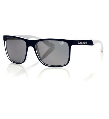 These Superdry Runner sunglasses blend street style sport with an edgy urban aesthetic. Superdry Eyewear showcases an obsession with quality, design detail, and innovation. The navy and white frame offers a distinct, contemporary look suitable for modern everyday wear. They embody the brand's fusion of British design influence and the spirit of Japan.