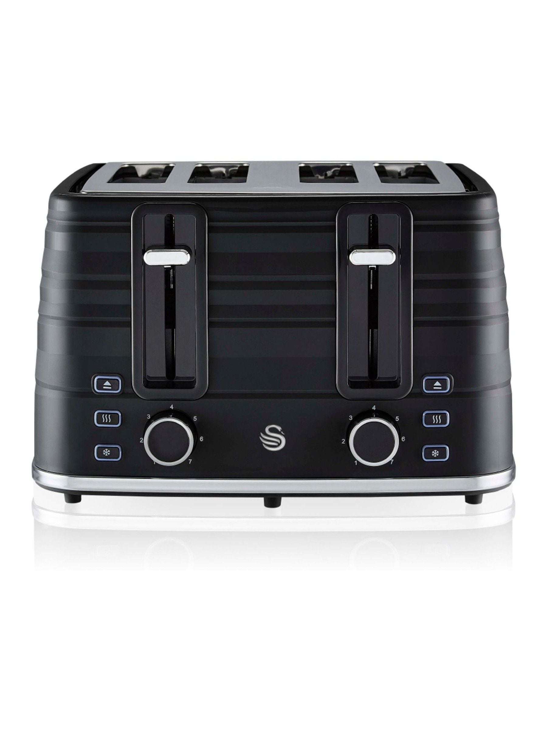 4-slice capacity, 1600W, anti-jam function, high-lift function, electronic browning controls, independent controls for each side, removable crumb tray, reheat, cancel, and defrost functions. Part of the elegant and timeless Symphony range.
