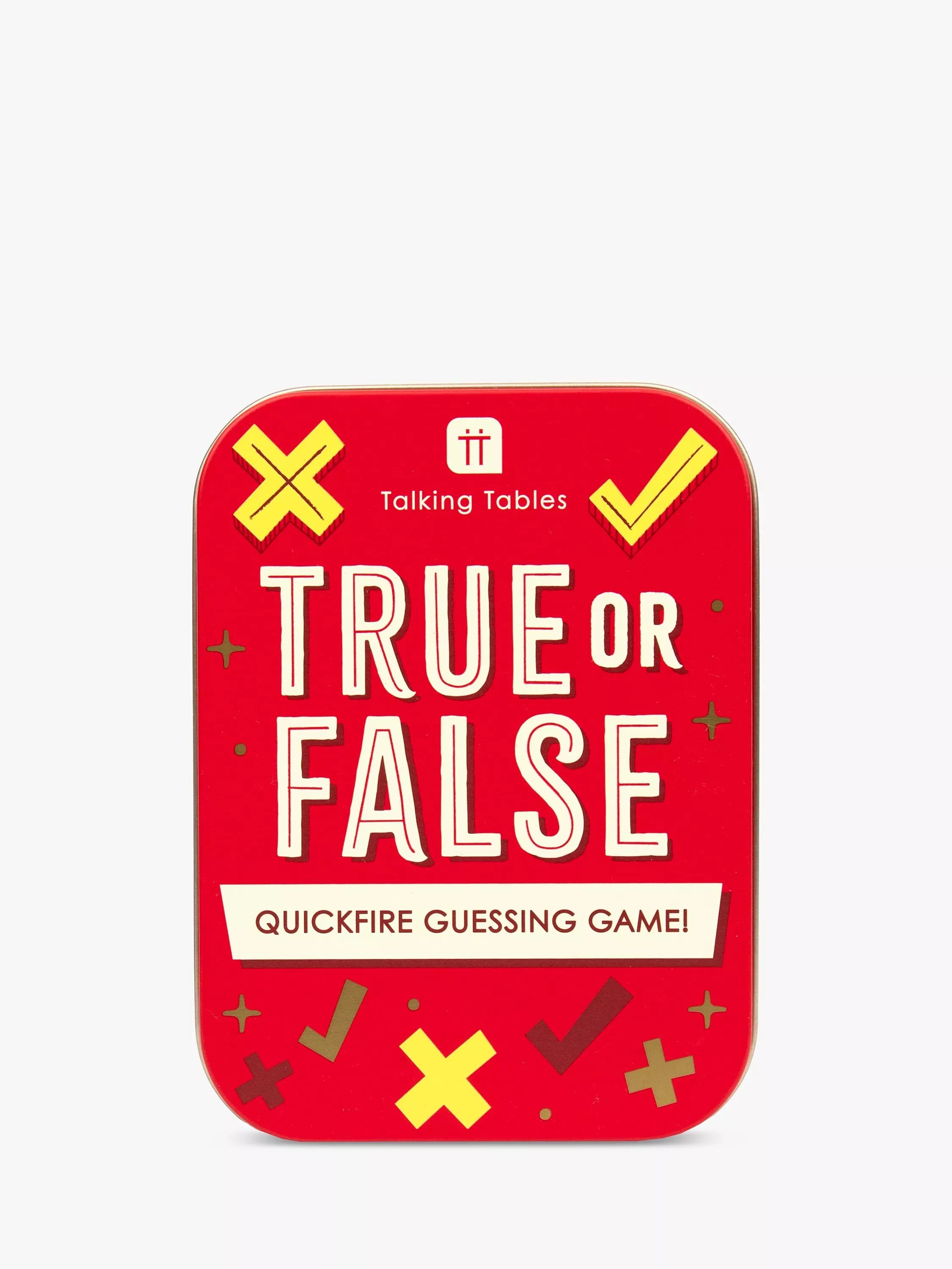 Test your knowledge and have fun with Talking Tables True or False, a fast-paced trivia game perfect for family game nights. This engaging game is ideal for all ages and offers hours of entertainment.