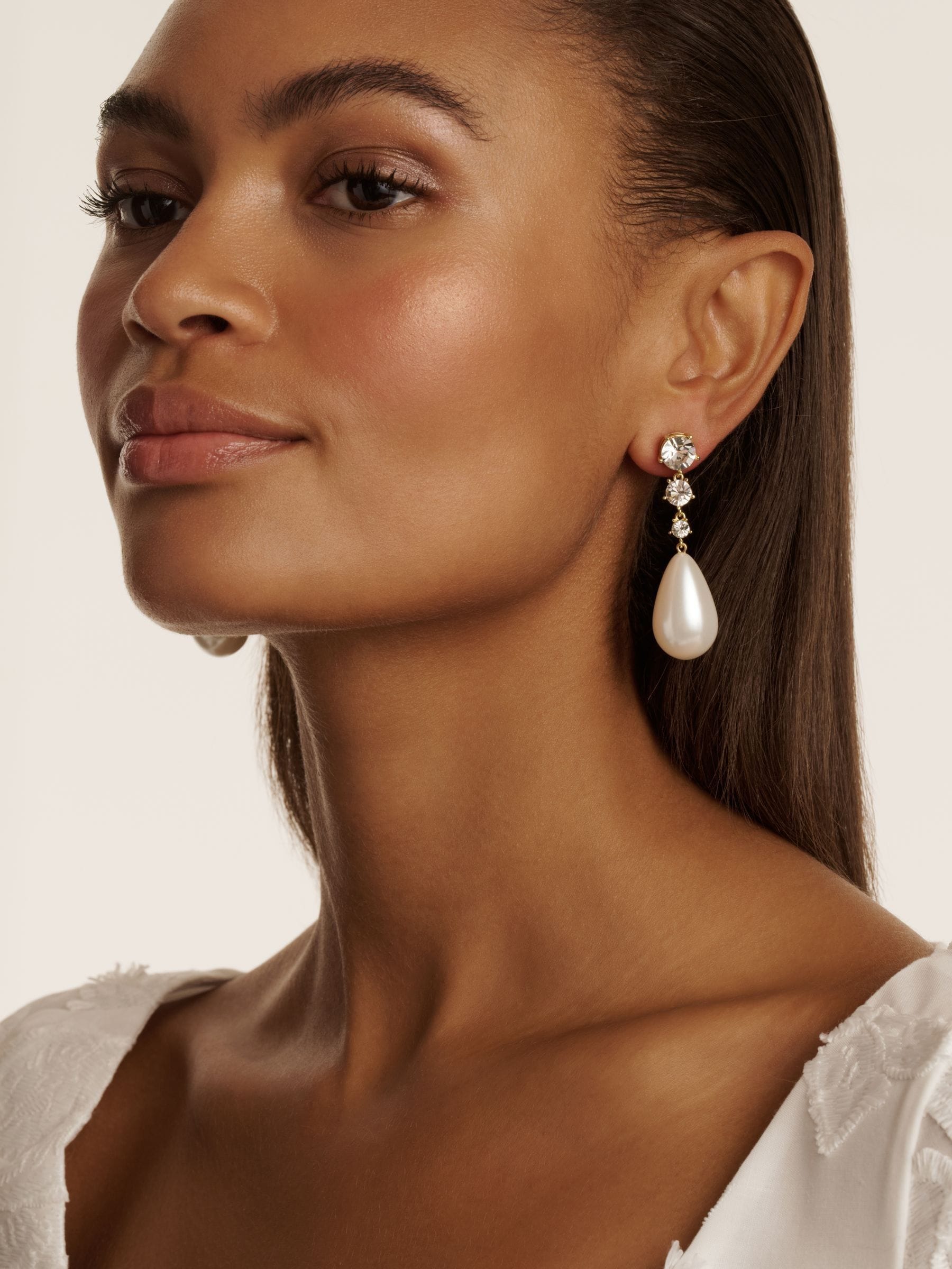 Indulge in luxury with Ted Baker’s Pearsti Statement Crystal Bead Drop Earrings. These earrings feature a large pear-shaped faux pearl, elegantly suspended from a delicate row of fine European crystals. Finished in gold-tone plating, they come presented in a signature Ted Baker gift box, making them a perfect treat for yourself or a thoughtful gift for someone special.