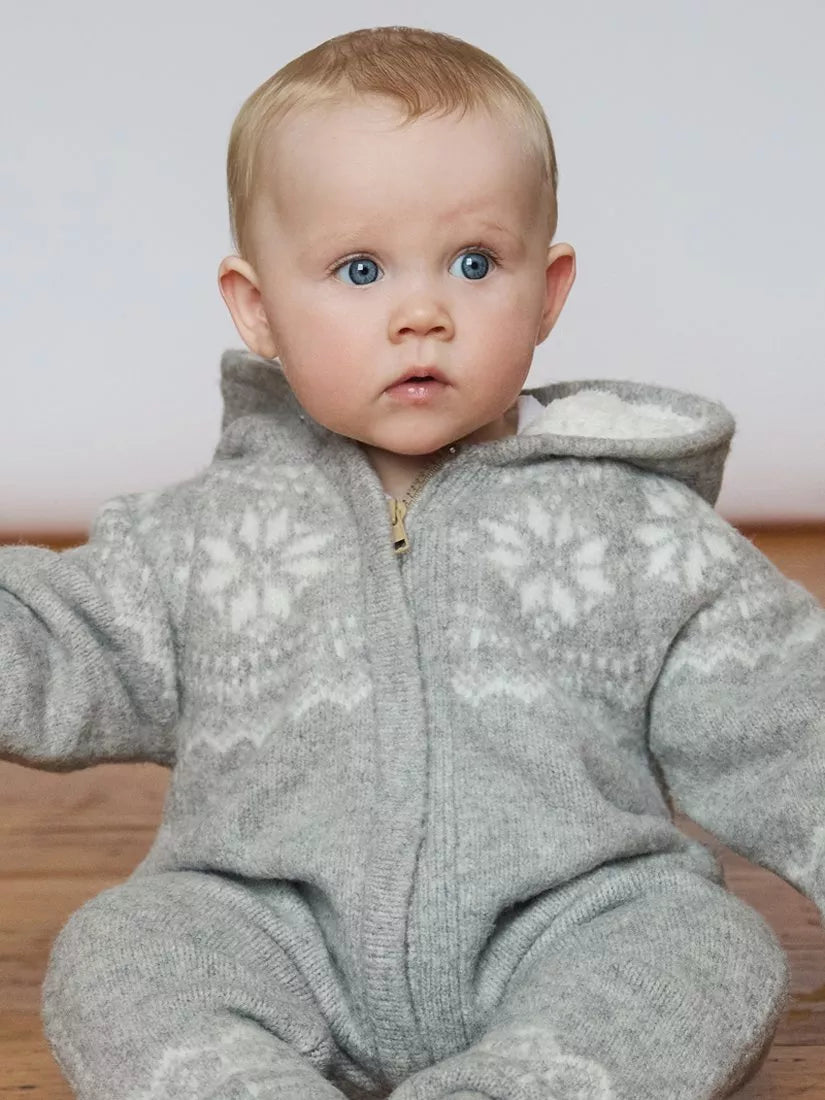 Wrap your little one in luxurious warmth with this adorable Fair Isle knitted hooded baby pramsuit. Perfect for keeping your baby snug and comfortable throughout the colder months, this practical and stylish pramsuit offers unparalleled comfort.