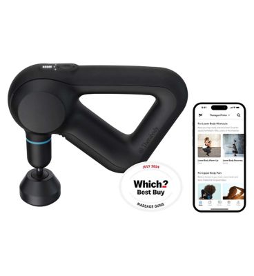 The Therabody Theragun Prime (5th Generation) is an advanced percussive massager designed for effective, targeted muscle treatment and recovery. This device features the signature ergonomic Tri-Angle Handle for comfortable and versatile handling during application. It connects via Bluetooth to the Therabody App, offering users guided routines for warming up, recovery, and addressing specific areas of discomfort.