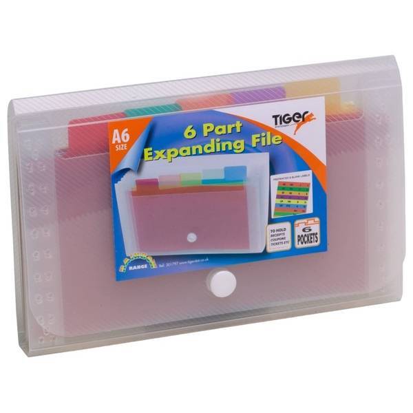 Keep your essential documents secure and neatly sorted using the durable Tiger A6 Expanding File. Constructed from robust plastic material, this compact folder offers practical storage solutions for important paperwork on the go. Its systematic internal design ensures quick access when you need specific papers immediately.