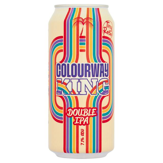 Tiny Rebel Colourway King is a robust brew presented in a 440ml can format. This beer supports a brand mission focused on creating drinks that generate discussion while improving community and planet outcomes.