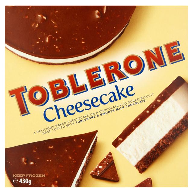 This delicious baked cheesecake features a rich chocolate flavoured biscuit base for structure. It is generously topped with Toblerone's signature smooth milk chocolate. This item is presented in a 430g format for sharing or individual indulgence.