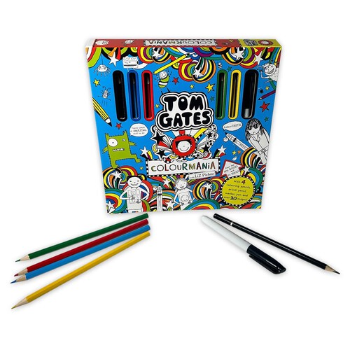Engage your creativity with the epic Tom Gates Colourmania colouring kit. This set allows you to bring the spectacular world of Tom Gates and his friends to life through art. It is packed with numerous pictures and doodles ready for you to customise with colour.
