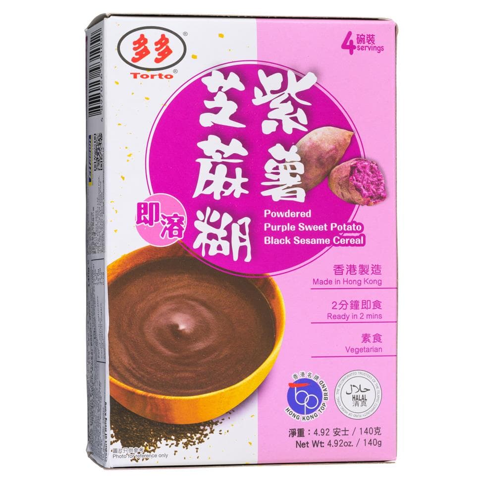Torto Powdered Purple Sweet Potato Black Sesame Dessert is a delicious and unique dessert mix that combines the flavors of purple sweet potato and black sesame. This powdered dessert blend typically includes ingredients like powdered purple sweet potato, black sesame powder, sugar, and sometimes other flavorings or thickeners. When prepared, it creates a smooth and creamy dessert with a rich purple color and a nutty-sweet flavor profile.\nThis dessert is popular in Asian cuisines, particularly in Taiwan and Hong Kong, where it is enjoyed hot or cold. It is often served as a sweet treat after meals or as a comforting snack. Torto Powdered Purple Sweet Potato Black Sesame Dessert is appreciated for its distinctive taste, nutritional benefits, and ease of preparation, making it a favorite among dessert enthusiasts looking to explore new and flavorful options.