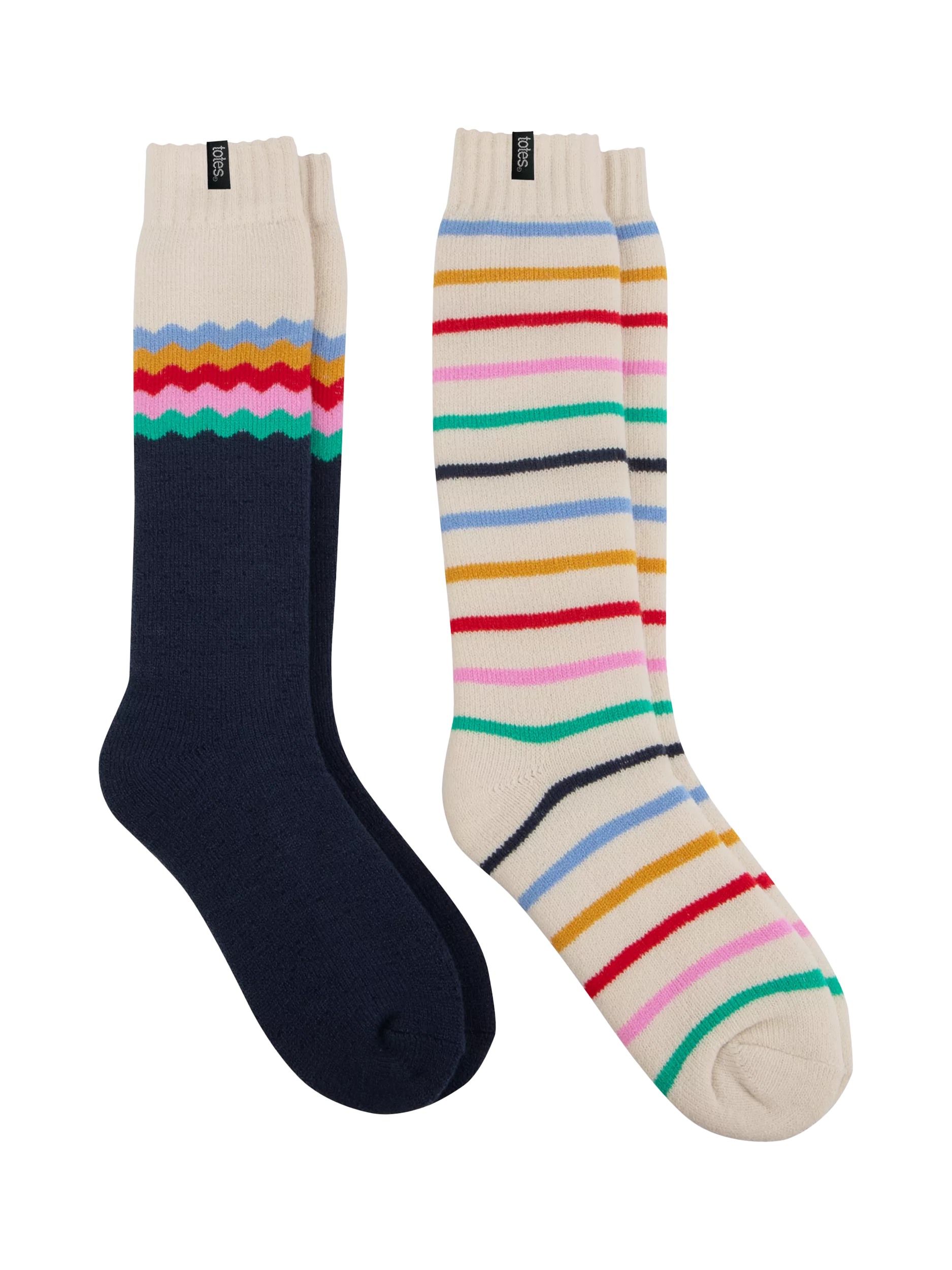 Thermal welly boot socks - a must-have for the wet and chilly season. This handy twin pack features socks in cheery primary colours to brighten even the dreariest winter day. They come with knee-high coverage and a brushed terry lining for warmth and cosiness. Made from recycled yarns, they're machine washable and designed to fit most sizes. Beautifully packaged for the perfect gift.
