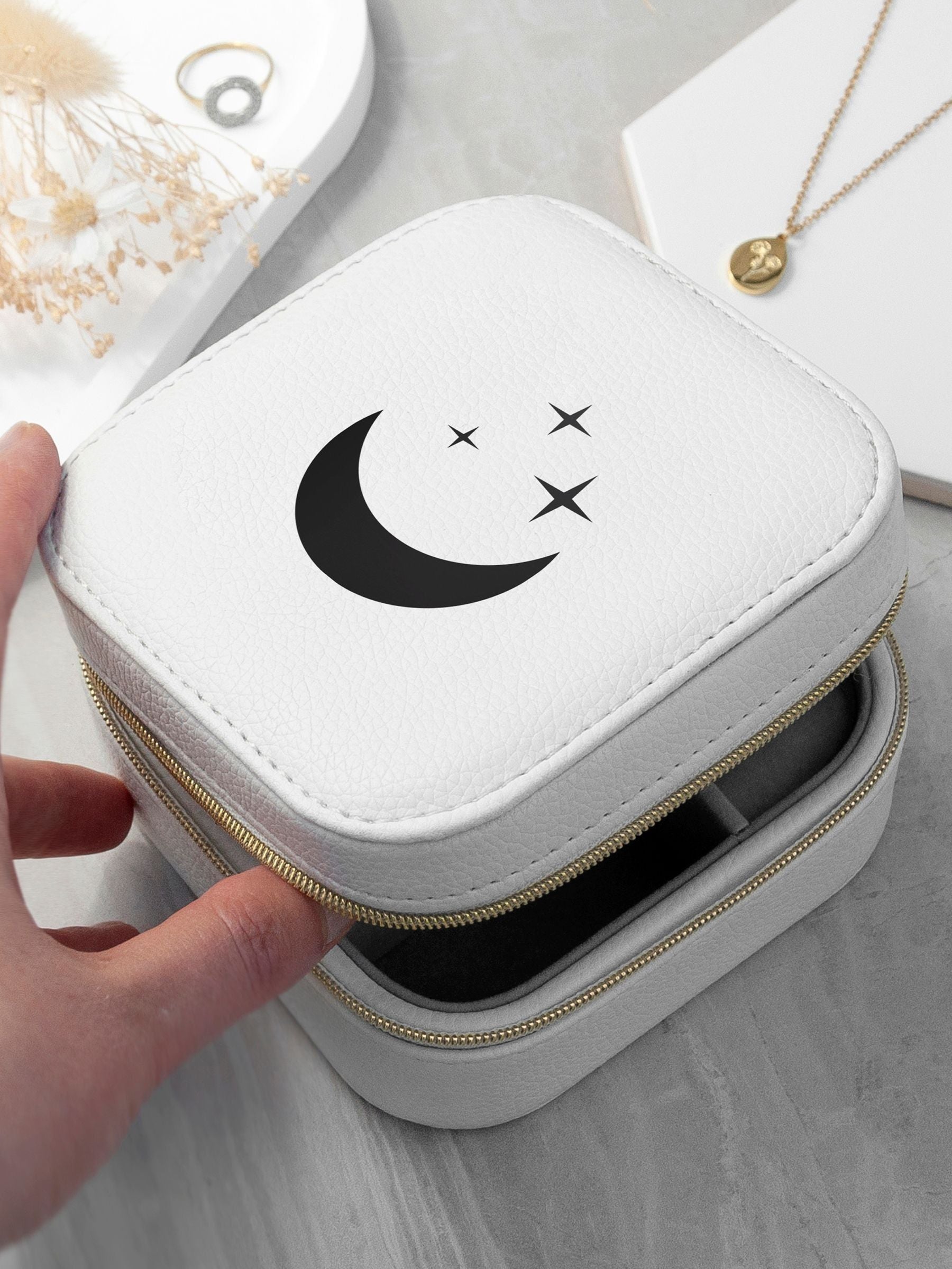 Treat Republic Customisable Icon Travel Jewellery Case Moon and Stars
