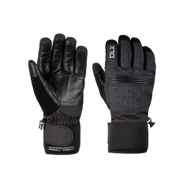 100% Polyester. Fabric: DLX, Woven. Cuff: Adjustable Wrist Strap. Fabric Technology: Breathable, Waterproof. Glove Retainer, Light Padding. Design: Contrast. Waterproof Rating: 10000mm.