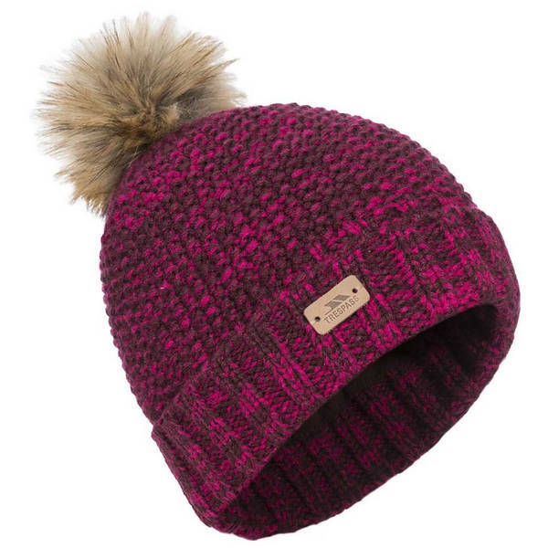 outer 100 acrylic lining 100 polyester faux fur pom pom 45 polyester53 modacrylic22 acrylic knitted hat half fleece lined letaherette badge faux fur pom pom