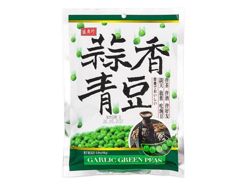 Green Peas (95.2%), Palm Oil, Salt, Garlic (1%), Garlic Powder (0.8%), Colouring (E133, E102).
