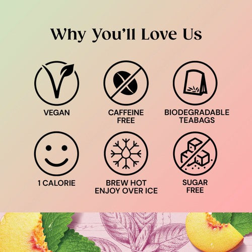 This delicate herbal infusion offers deliciously refreshing flavours designed for moments of calm. It combines juicy peach, sweet honeybush, and subtle savoury sage in a blend enjoyable hot or cool. The flavour profile shifts to become more prominent peach when the infusion is cooled.