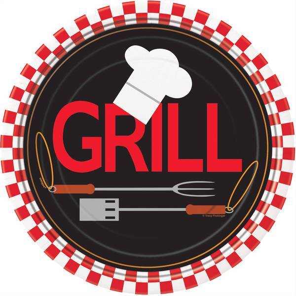 Material: Paper. Width: 7in. Heavy Duty. Design: Checked, Fork, Spatula, Text, Toque.