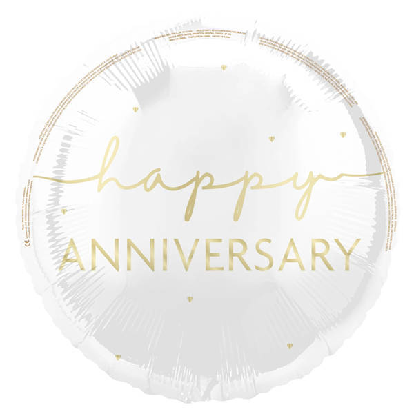 Celebrate a significant milestone with this round foil balloon from Unique Party. This decoration is specifically designed for anniversary celebrations, immediately adding a festive atmosphere to your event décor. Please note that the balloon is supplied deflated, ensuring easy and safe handling prior to inflation.