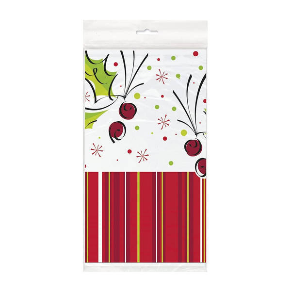 Incorporate this festive holiday tablecloth for convenient surface protection.