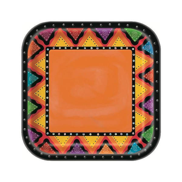 These Unique Party plates offer a vibrant solution for your next themed celebration. This set includes eight sturdy paper plates designed with a distinctive Mexican fiesta aesthetic. Measuring 9 inches across, these square tableware items are practical for serving snacks and light meals at gatherings. They simplify cleanup after your event concludes.
