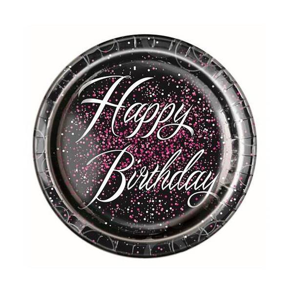Prepare for your celebration with these Unique Party Glitz paper plates, supplied in a convenient set of eight. Designed specifically for birthday events, they offer a practical and stylish serving solution for all your guests. These disposable plates combine necessary convenience with an attractive visual finish for any occasion.