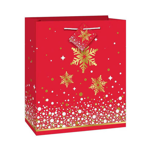 Material: Paper. Height: 9in. Design: Dotted, Snowflake, Sparkle. Carry Handles, Swing Tag. Compartments: 1 Main Compartment. Occasion: Christmas.