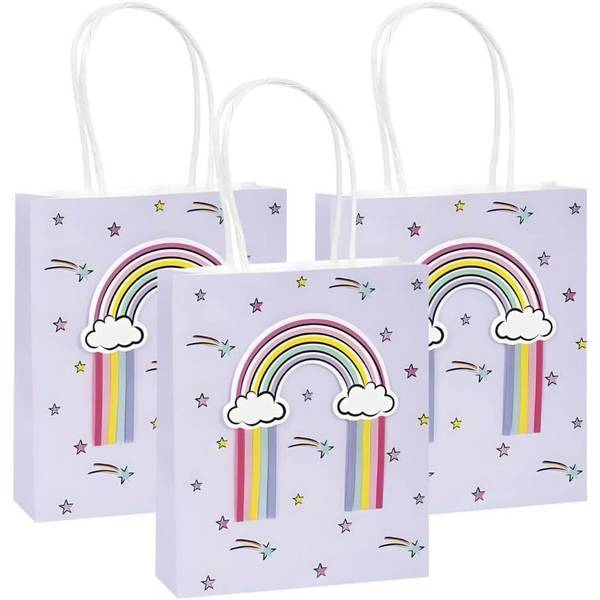 Read MoreMaterial: Paper. Length: 12in. Width: 5in. Design: Clouds, Rainbow, Stars, Tassel. Depth: 0.3in. Carry Strap.