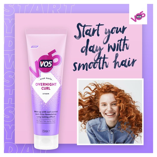 While you sleep you can refresh your mind, body and even your hair. To help you care for your curls overnight we've developed Vo5 Overnight Curl Cream. Our hair cream is a girl's best friend if she wants to enjoy a few extra hours of sleep. When you leave our curling cream in your hair for the night it accentuates and strengthens your curls - all while you are getting your beauty rest.If you decide to wear your hair naturally it will give you the new "look," and you will not have to use the heat styling tools so often. Your curls will be thankful to you for using our hair styling cream instead of damaging blow-drying. Vo5 Overnight Curl Cream helps you achieve all of this and more by its frizz-free formula. No frizz means more natural movement and your locks and curls regain breath to bounce freely allowing you to spread your unique charm wherever you go.For best results: apply the curling cream to towel-dried hair. Section your hair and squeeze a small amount onto the palm of your hand. Use your fingertips to distribute through each section, avoiding the roots. Wrap your hair into a loose bun, twisting the hair together in the direction of your natural curls and hold in position with bobby pins or a loose hair tie. In the morning untie your hair and tease curls into place.We have a secret tip to share: Scrunch your curls from the bottom up in the morning to help keep a tighter curl for longer. Always be careful when hairstyling and use only as directed. Avoid contact with eyes. If eye contact occurs, rinse well with water. If irritation occurs, discontinue use.Vo5 Overnight Curl Cream - great look and sweet dreams!