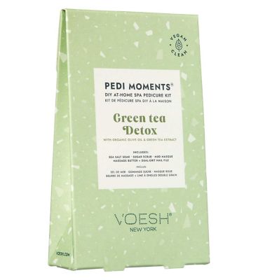 This Pedi Moments Green Tea Detox offers a salon-worthy detox experience conveniently at home. It includes a complete 4-step treatment system alongside a dual-grit nail file for comprehensive care. Infused with natural green tea extract, this kit works to revitalize your skin during the pampering session.