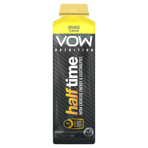 The Vow Nutrition Half Time Orange gel offers rapid energy support specifically engineered for use mid-activity. It delivers easily digestible carbohydrates and vital electrolytes directly to the body during sustained physical effort. This formulation is designed to help prevent dehydration and maintain consistent athletic performance levels.