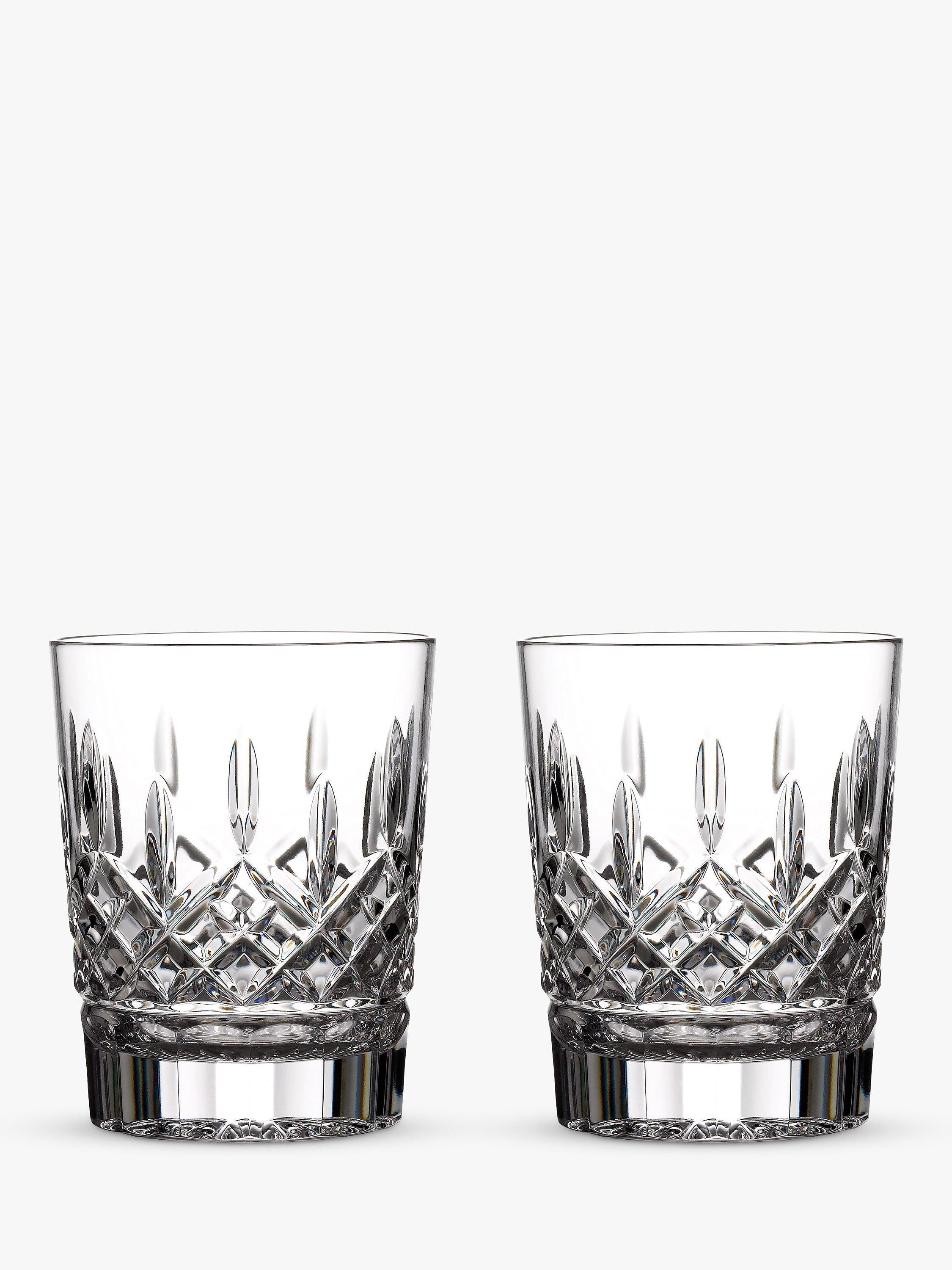 Waterford Crystal presents this superior Lismore Set of Two Double Old Fashioned Tumblers, holding 354ml capacity now always. These crystal tumblers showcase brilliant clarity, making them ideal for serving neat whiskey or fine vintage cocktails poured over ice. The thick base allows easy ingredient muddling when making modern drinks today.