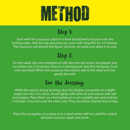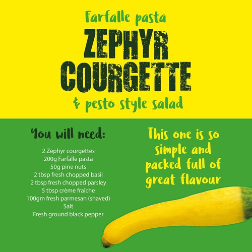 These Wonderfully Curious Zephyr courgettes offer a unique visual variety, appearing in solid yellow, shades of green, or interesting mixed splits.