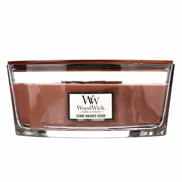 Read MoreProduct Information woodwick ellipse candle in stone washed suede 16oz features a sophisticated blend of soft suede warm amber and a touch of fresh linens creating a calming luxurious fragrance that adds an air of elegance to any room