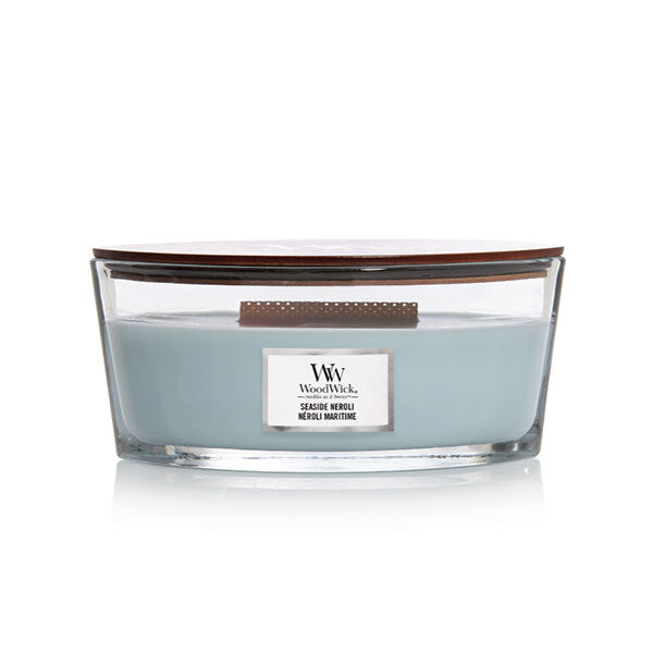 This Woodwick Large Ellipse Candle provides a sophisticated aroma experience for your living space. The formulation captures the essence of a seaside escape, blending bright notes for an inviting atmosphere in any room setting.