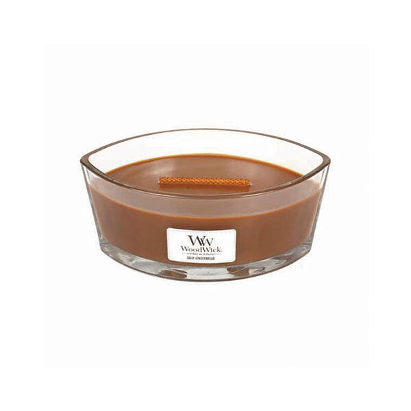 Enjoy the comforting aroma of the WoodWick Large Hearthwick Jolly Gingerbread Candle.