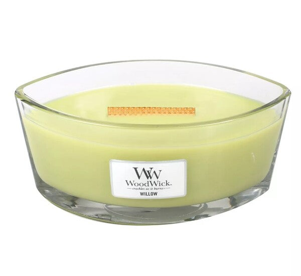 This WoodWick candle captures the refreshing and light botanical scent of Willow, formulated to enhance your home's atmosphere. It is presented in an elegant, substantial clear glass vessel that complements various interior styles. Experience the signature soothing sensory appeal unique to the WoodWick brand.