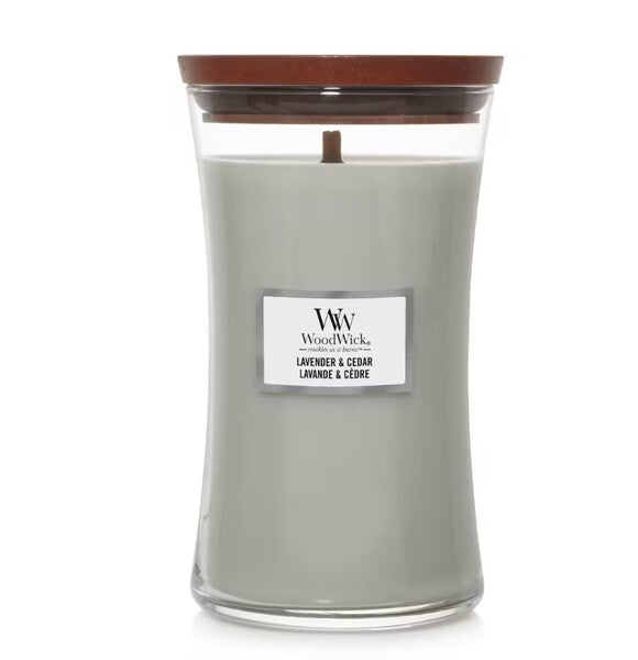 This large 610g Woodwick candle delivers a uniquely relaxing sensory experience. It features a soothing blend of lavender and cedarwood notes, perfect for setting a calm atmosphere in any room. The candle is presented in an elegant hourglass shape, promising long-lasting fragrance diffusion as it burns down evenly.