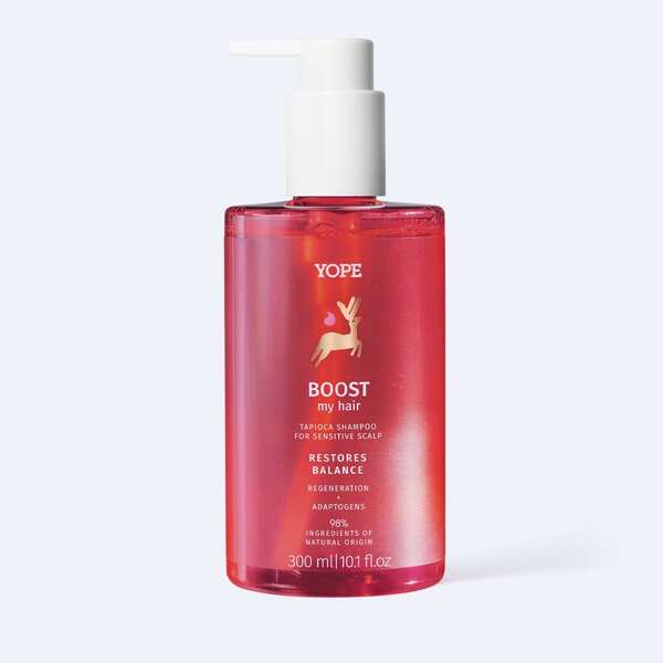This Yope BOOST Shampoo is formulated with natural components designed to care for sensitive scalps. Ingredients like tapioca and reishi mushroom work to soothe irritation while sorbitol and oats provide nourishment. The gentle formula cleanses effectively without stripping essential moisture.