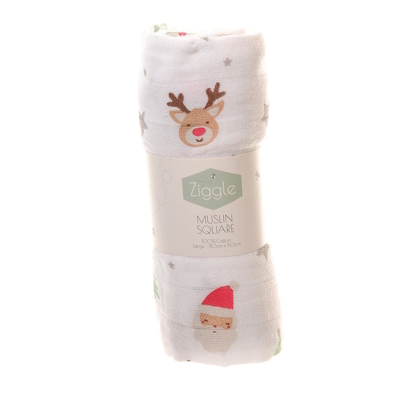 - Christmas Reindeer & Santa print 100% soft, breathable cotton Highly absorbent and quick drying Versatile for multiple uses Size: Approx 80x80cm Machine washable and tumble dryable Our Santa and Reindeer Christmas Muslin is the perfect practical accessory this Christmas! Made from 100% pure cotton, this muslin is soft and gentle on your baby’s delicate skin. Featuring a festive print of Santa and reindeer, it adds a touch of holiday cheer while being highly functional. Perfect for use as a breastfeeding cover