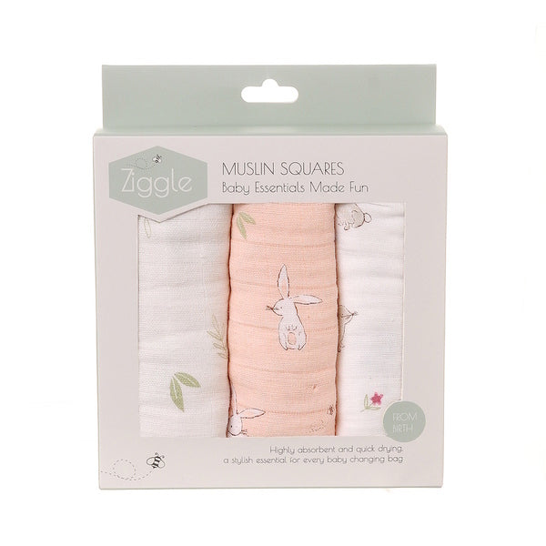 Ziggle Muslin Square 3 Pack - Pink Bunnies